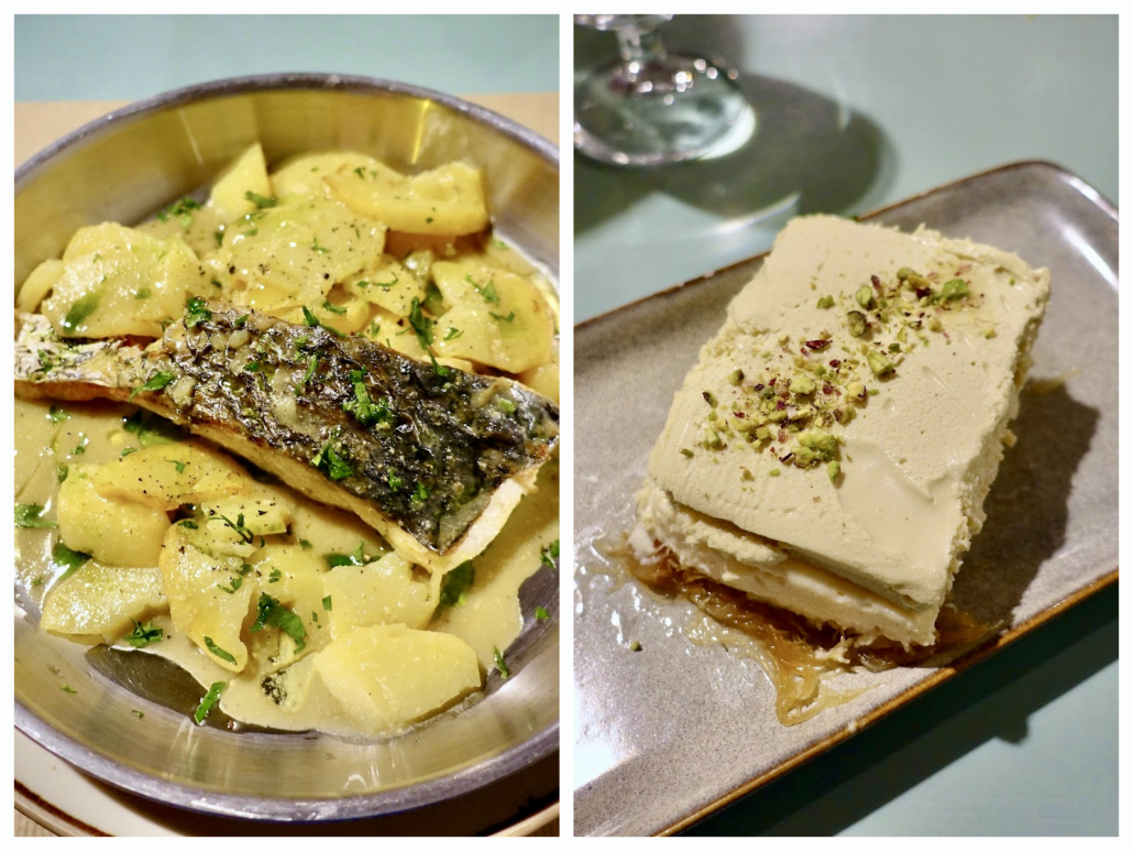 a tavern on the coast south of the Monemvasia Castle, turned out to be a hit! On two occasions, it persuaded with well-made Greek cuisine that came with a modern twist now and then. I very much liked the starters just as fried local cheese (8€) or roasted aubergine (7€). Also the spinach salad was a good choice (10€). When it came to mains, we did not try out the meat dishes, but only had fish and seafood (15 to 18€). Yet these dishes were made with quality ingredients and immaculately prepared. And they were accompanied by original sides. The two desserts we had, Ekmek Kataifi (6€) and Lemon Pie(7€), were equally fine.